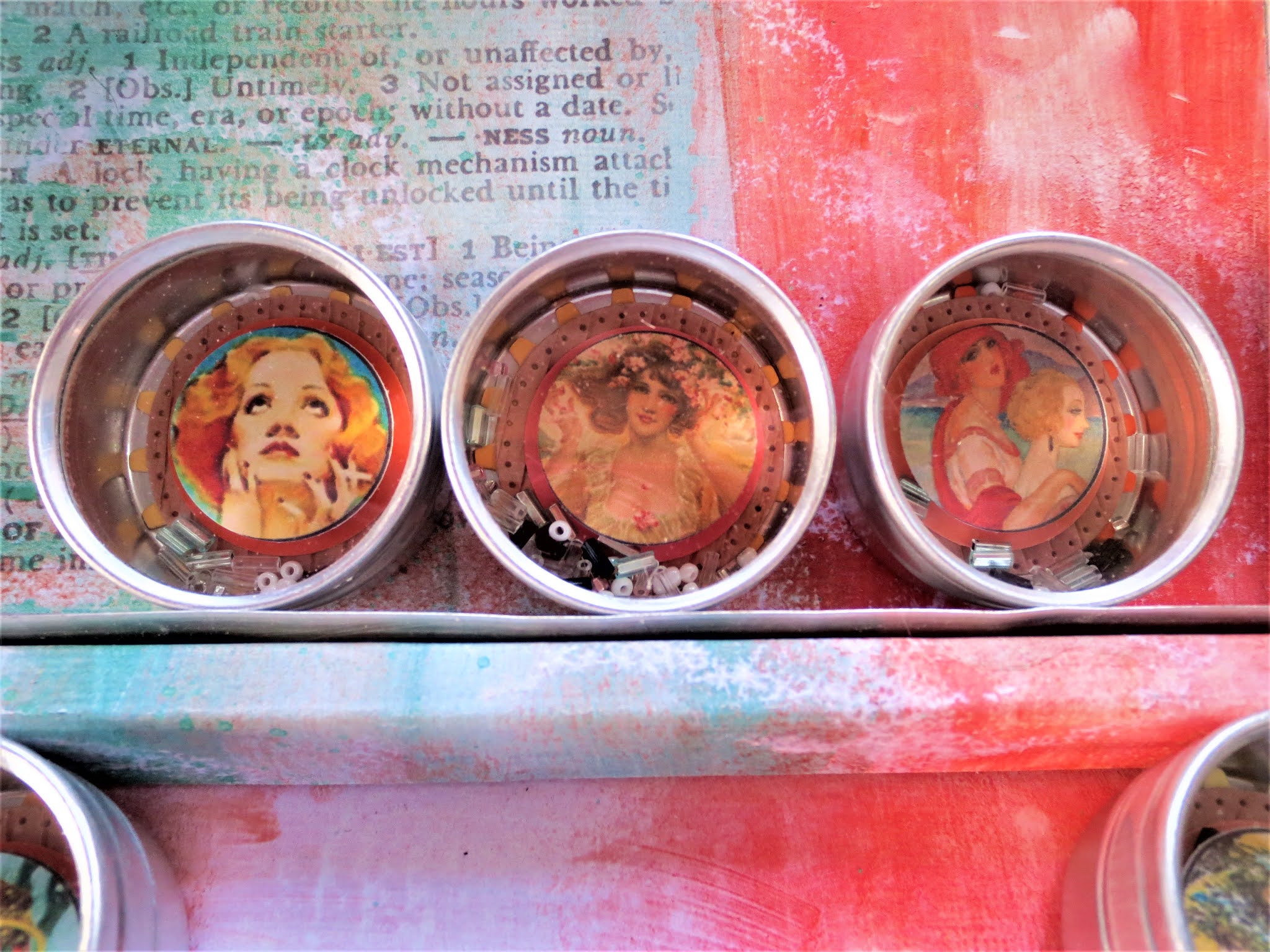 I created 3 projects using, Day of the Dead, Victorian Gothic Ladies, Gothic Beauty Tin toppers, which can found here,Etsy Shop, look under this months collection.